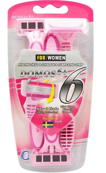 ویژگی خودتراش زنانه دوموس 6 تیغه مدل +6 بسته 3 عددی: